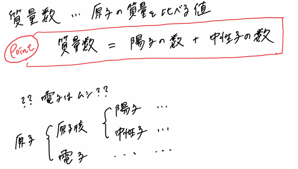 質量数 = 陽子の数 + 中性子の数