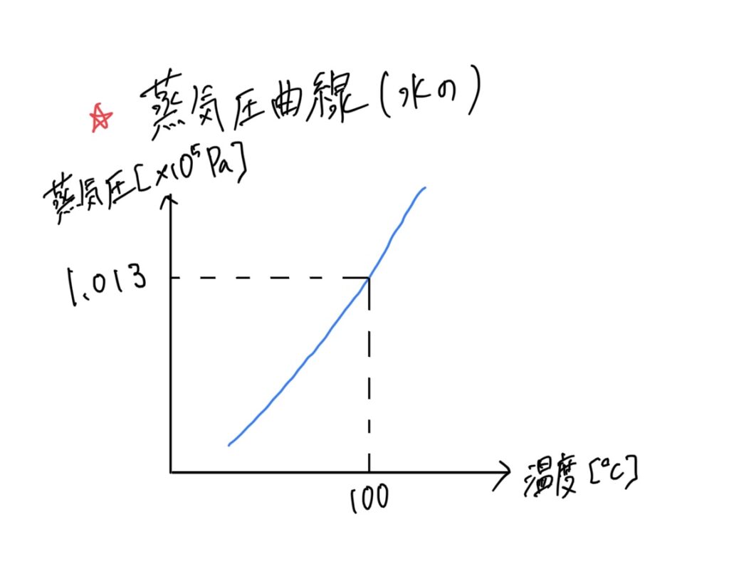 蒸気圧は下のグラフ(蒸気圧曲線)のように、温度が高いほど、大きくなります。