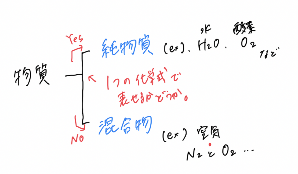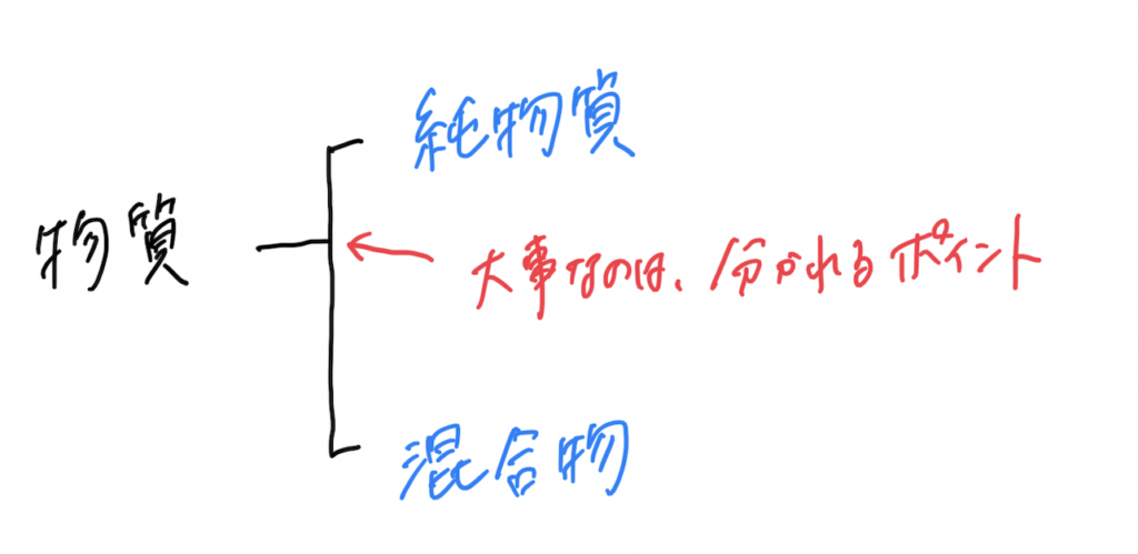 まず物質は、純物質混合物に分類されます。