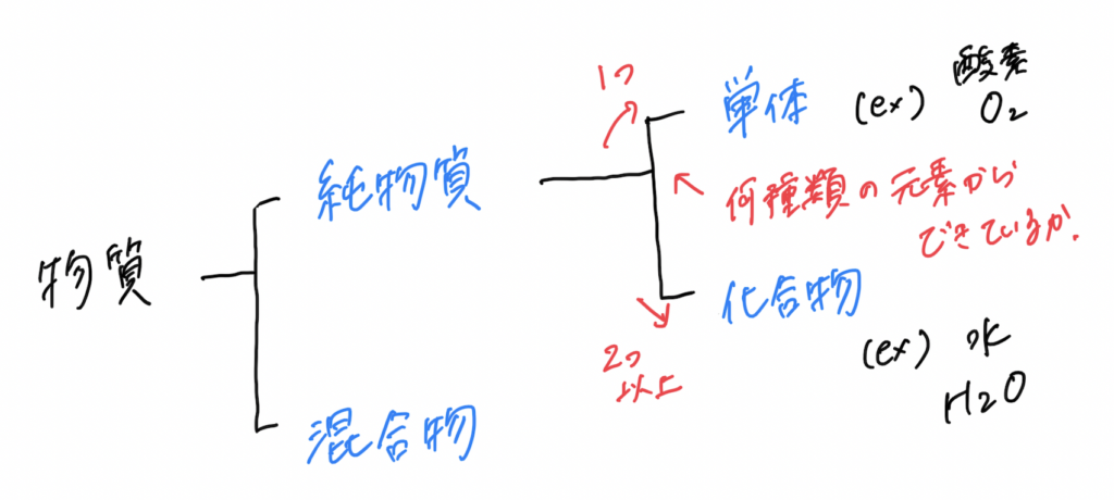 そして、純物質はさらに単体化合物に分類されます。