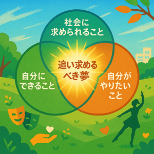 この3つの重なる場所に、みなさんが追い求めるべき夢があると思っています。